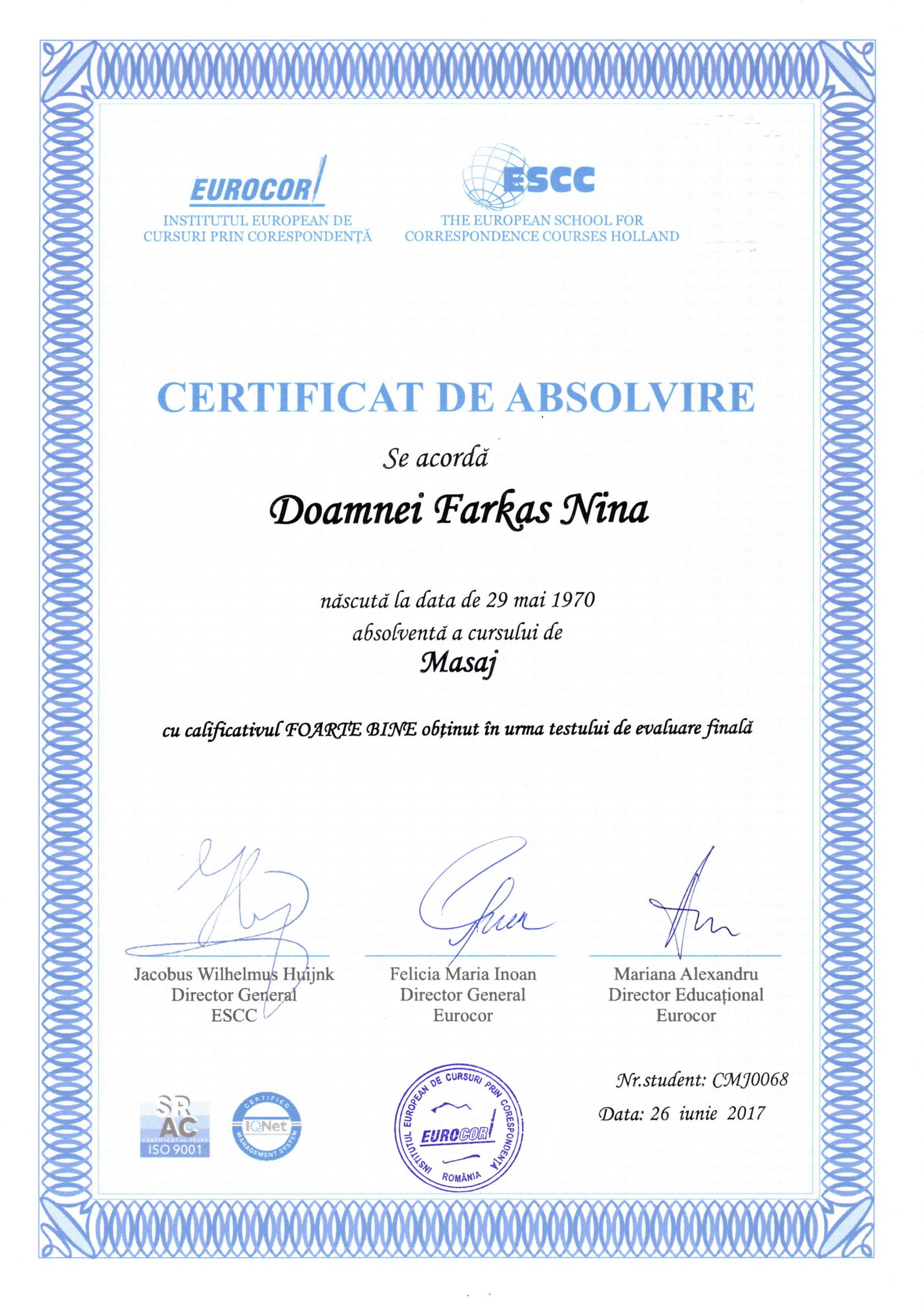 Aproape de 20 ani lucrăm în terapii alternative, oferind servicii de masaj de relaxare, masaj anticelulitic, masaj reflexogen (masaj în tălpi), masaj total, osteopatie, inversie terapeutică, detoxifiere prin osmoză, drenaj limfatic manual, echilibrări energetice, măsurători radiestezice, evaluare cu rezonanță magnetică quantică, biorezonanță-bioplasm 18d-nls, reiki, ozonoterapie.